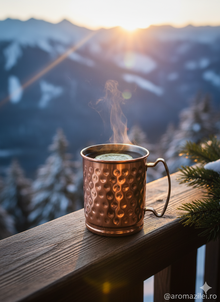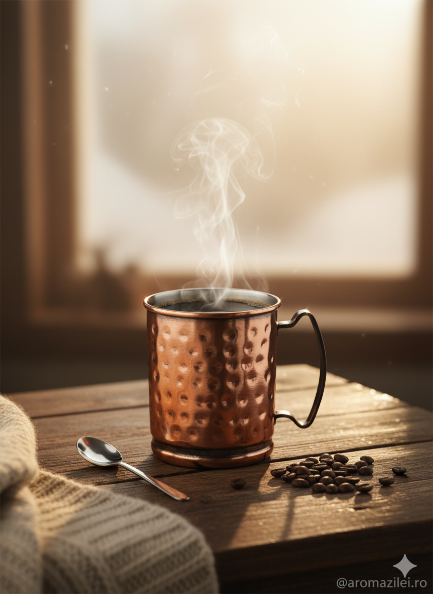 Cu luciul ei cald, reflexiile de cupru și aerul vintage-industrial, această cană spune povestea dimineților perfecte, a ceaiului savurat la cabană și a serilor cu vin fiert lângă foc.