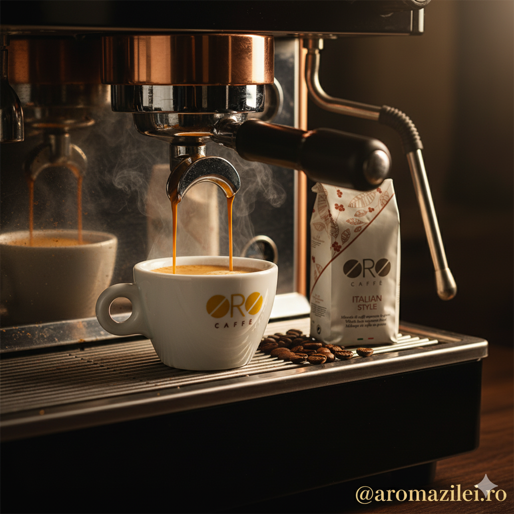Cafea ORO Italian Style – Espresso Intens & Cremos (1kg boabe) Arome puternice de ciocolată și alună prăjită, cremă densă și persistentă.
