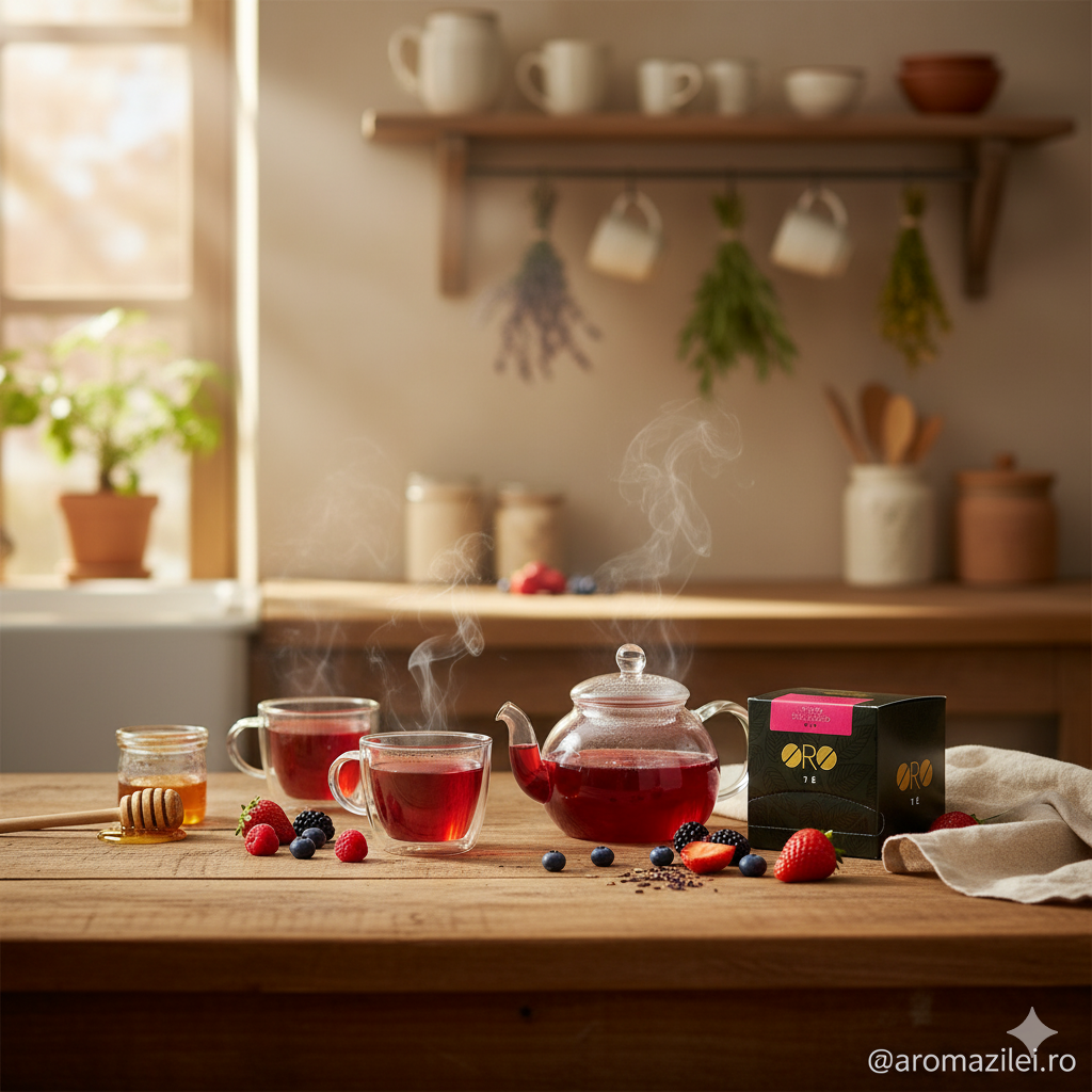Comandă acum de pe AromaZilei.ro și bucură-te de parfumul dulce-acrișor al fructelor de pădure, într-o infuzie BIO vibrantă și plină de culoare!