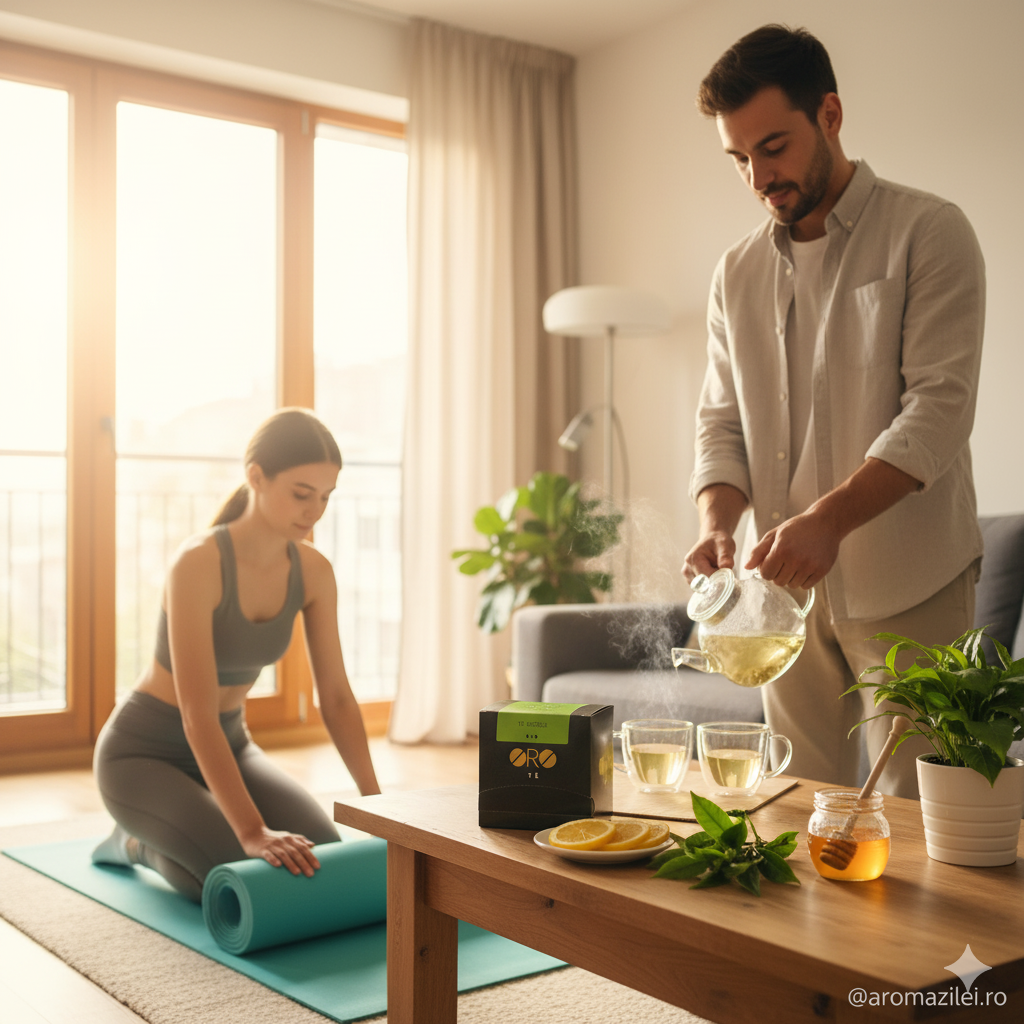 Da, este ideal pentru dimineață. Conține o cantitate moderată de cofeină naturală și oferă o energie blândă, fără agitație, fiind o alternativă excelentă la cafea.